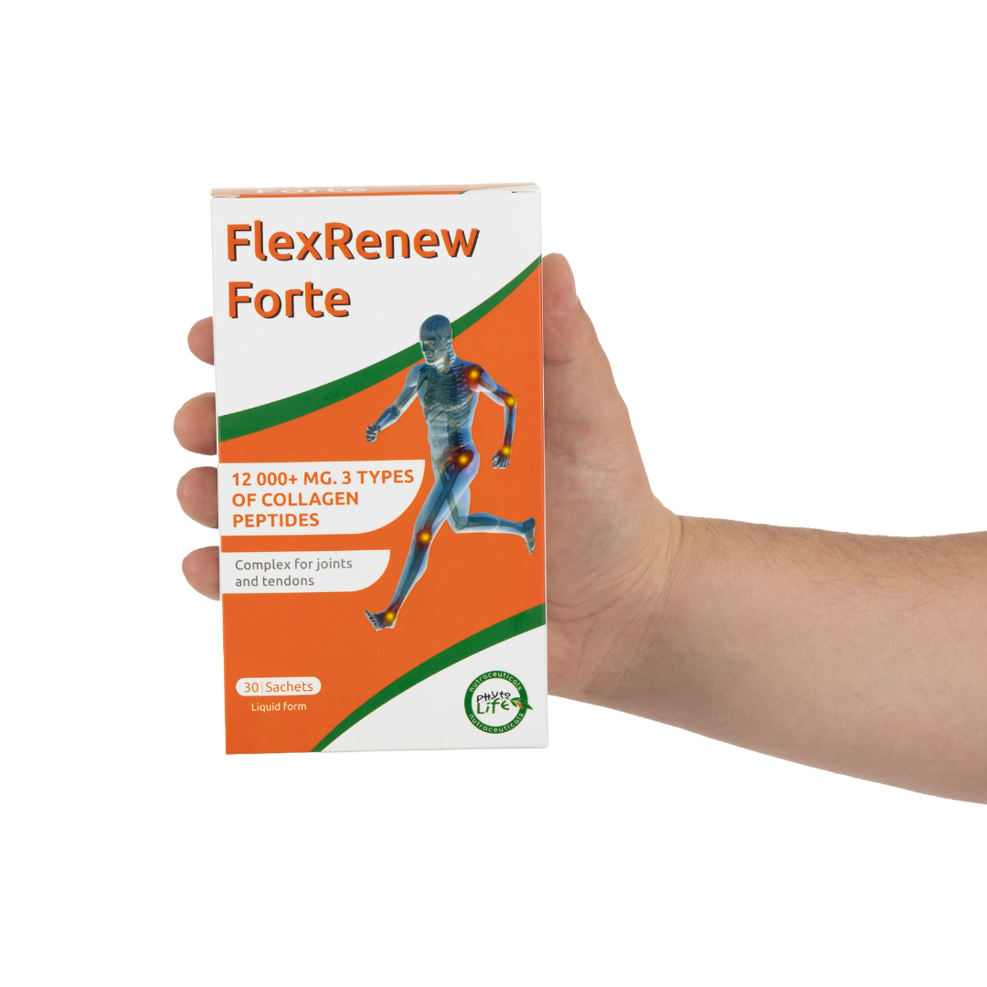 FlexRenew Forte е един от малкото продукти в света, който предлага клинично доказаните CollaSel® пептиди трипептиди в огромно количество в дневна доза. С добавени MСМ, магнезий и хиалуронова киселина – мощна комбинация за цялостна подкрепа на ставите. Благодарение на този състав Flex Renew Forte осигурява подвижност, комфорт и дълготрайно здраве на опорно-двигателния апарат.